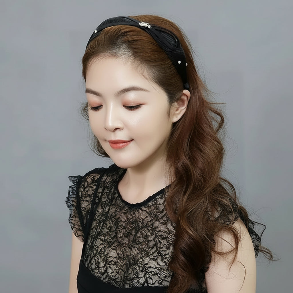 25 mm velvet hair band decorated with European crystals
