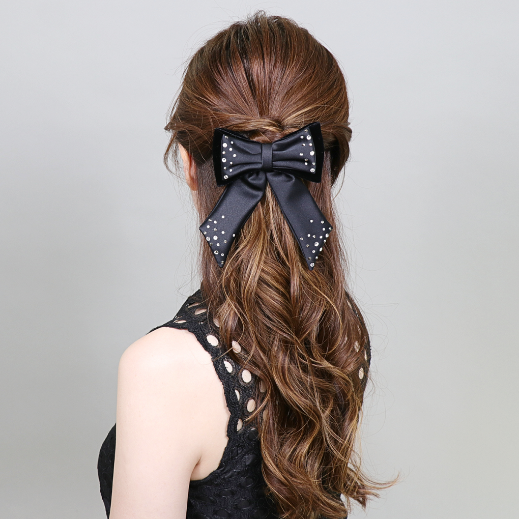 8 cm auto bohemian fabric and velvet bow decorated with European crystals
