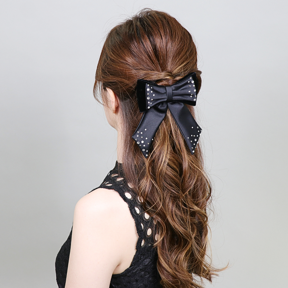 8 cm auto bohemian fabric and velvet bow decorated with European crystals