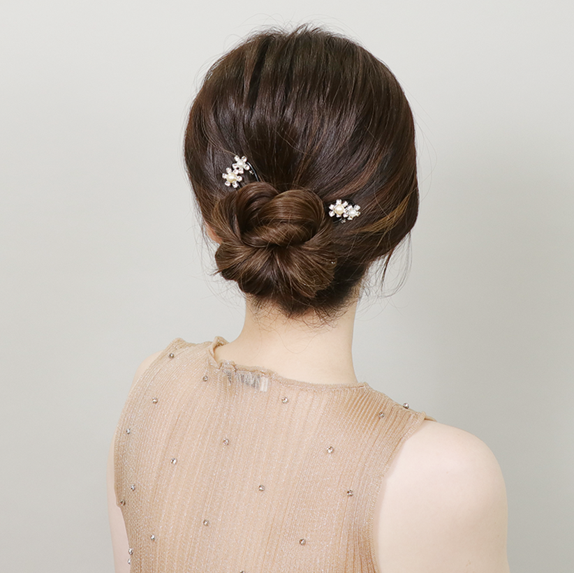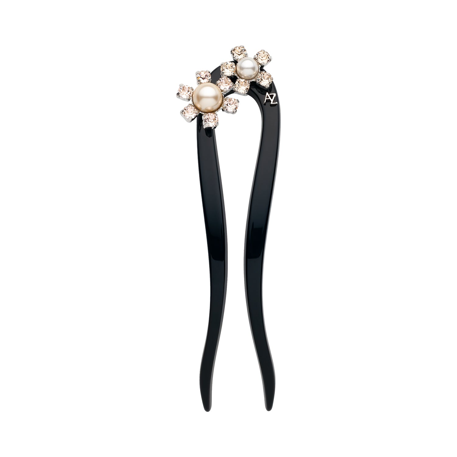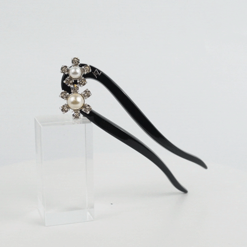 2 teeth chignon fork decorated with European crystals and pearls