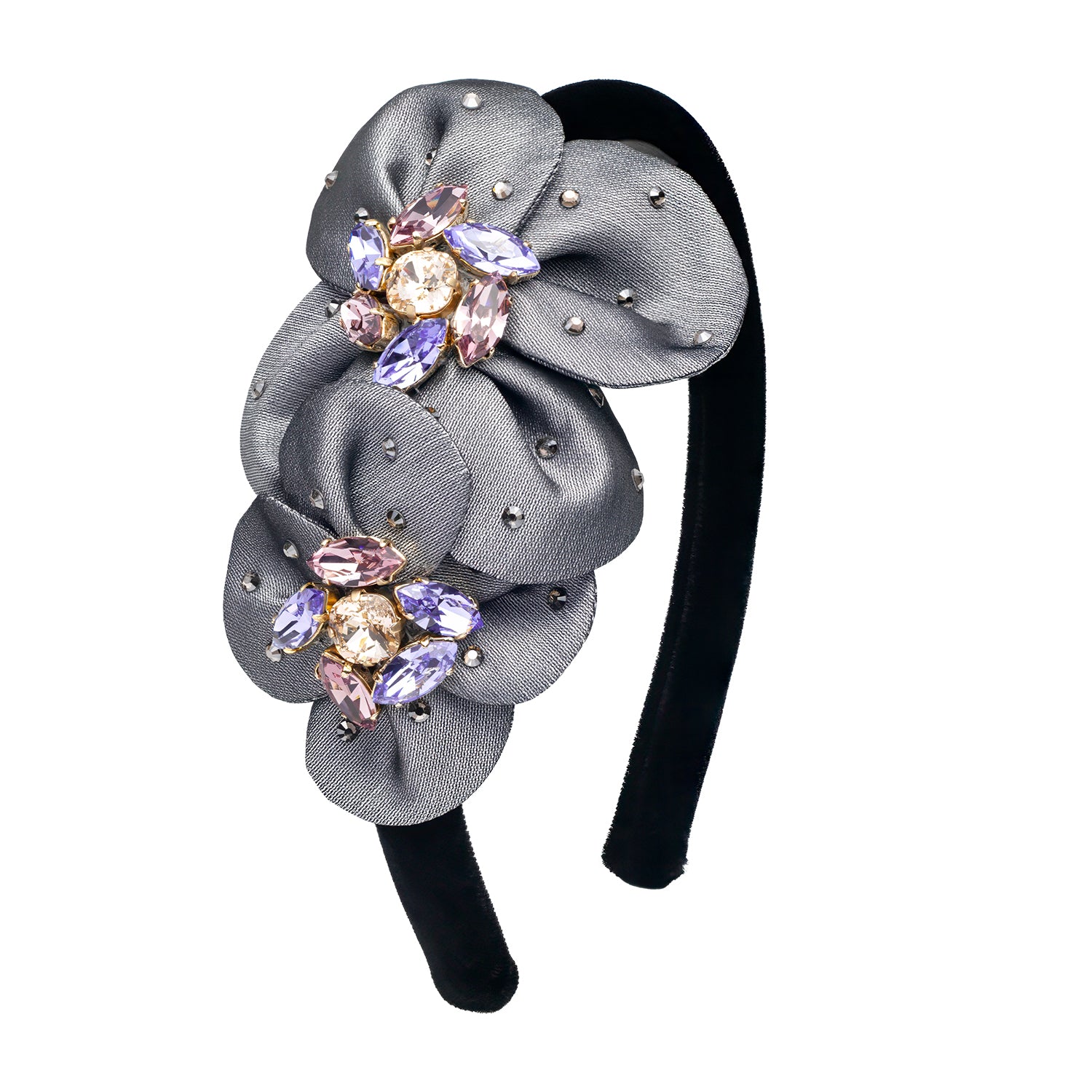 6mm duchesse satin hair band decorated with duchesse satin bow and European crystals