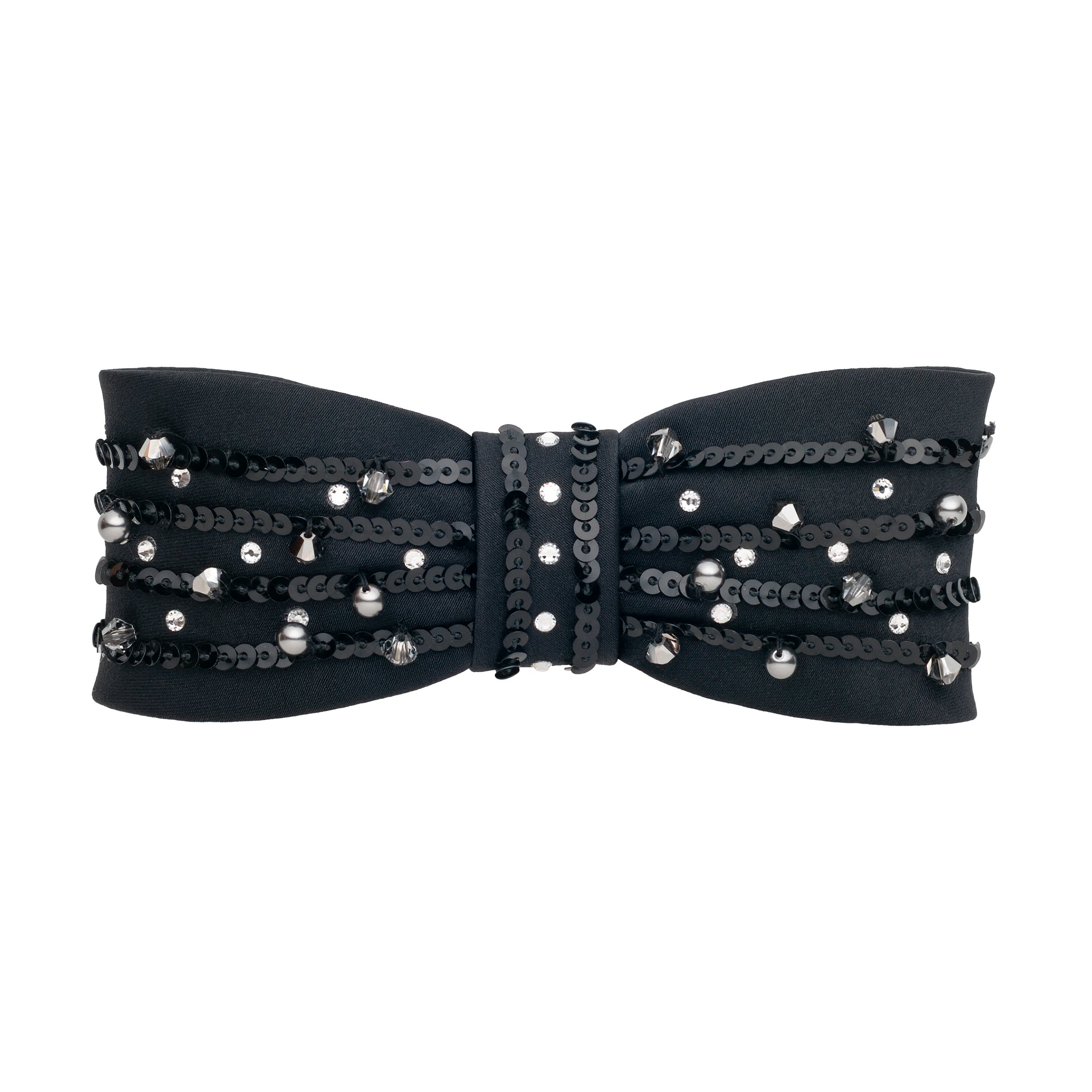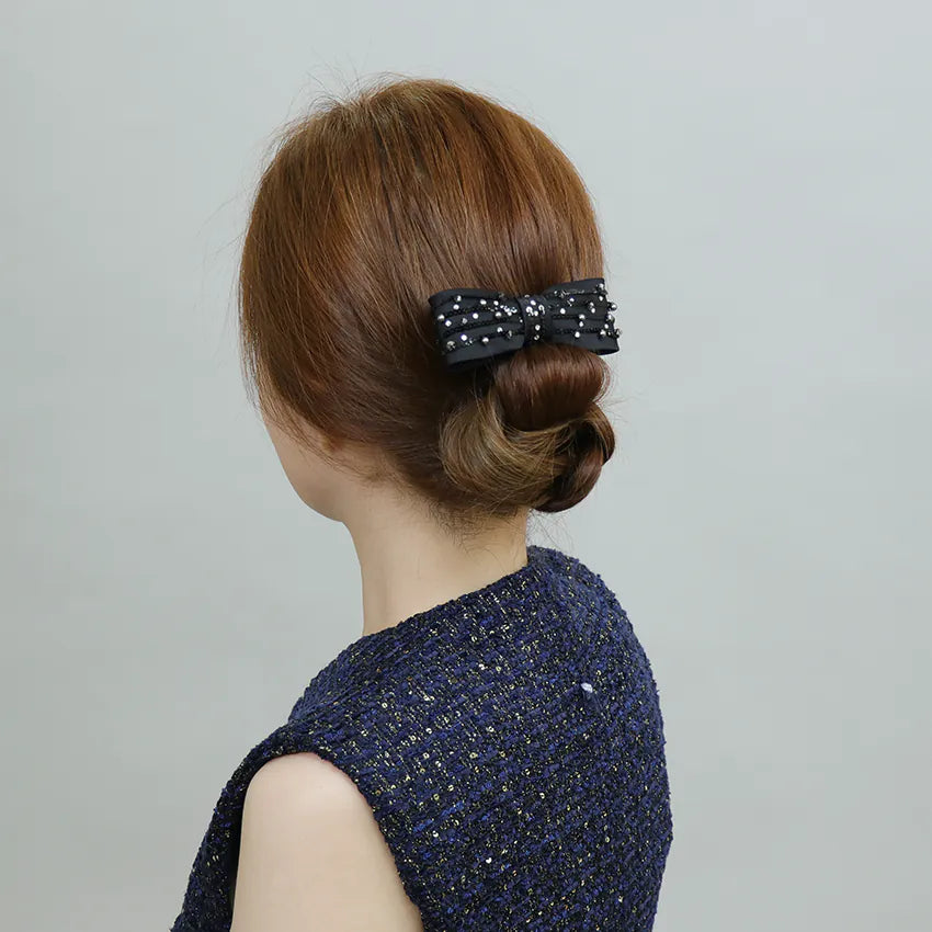 8 cm auto bohemian fabric bow decorated with European crystals and pearls and sequins